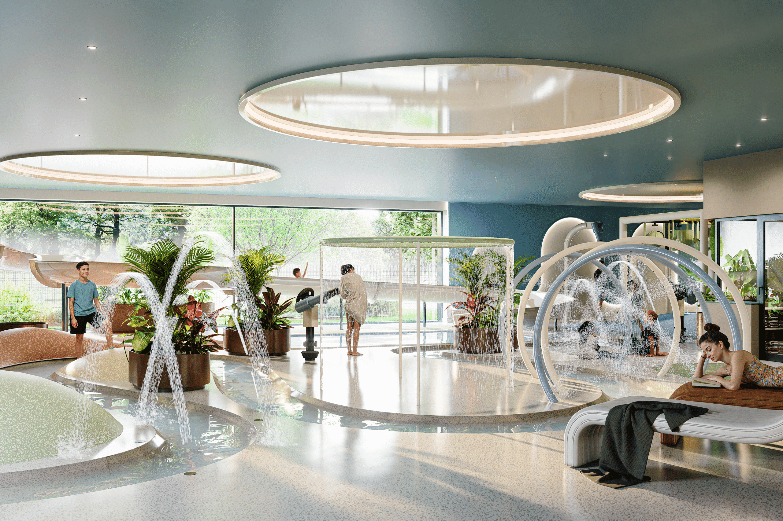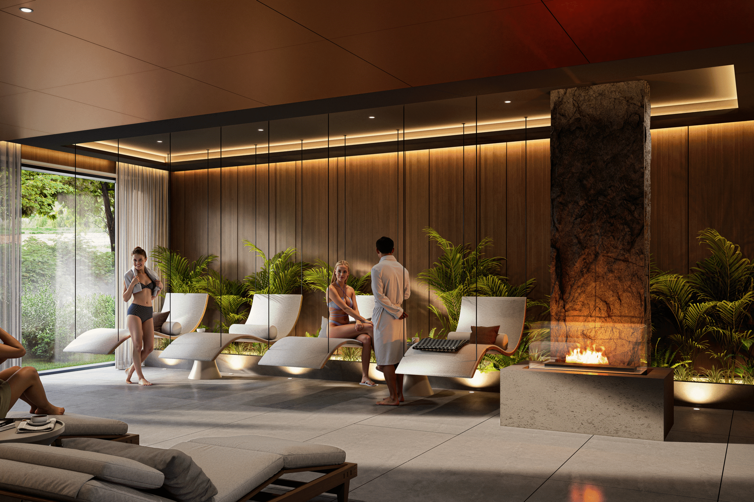 Na terenie kompleksu znajdą się również restauracje à la carte, klubowe lobby, zielone tarasy z panoramicznymi przeszkleniami, strefy zabaw dla dzieci oraz dwukondygnacyjne parkingi podziemne.